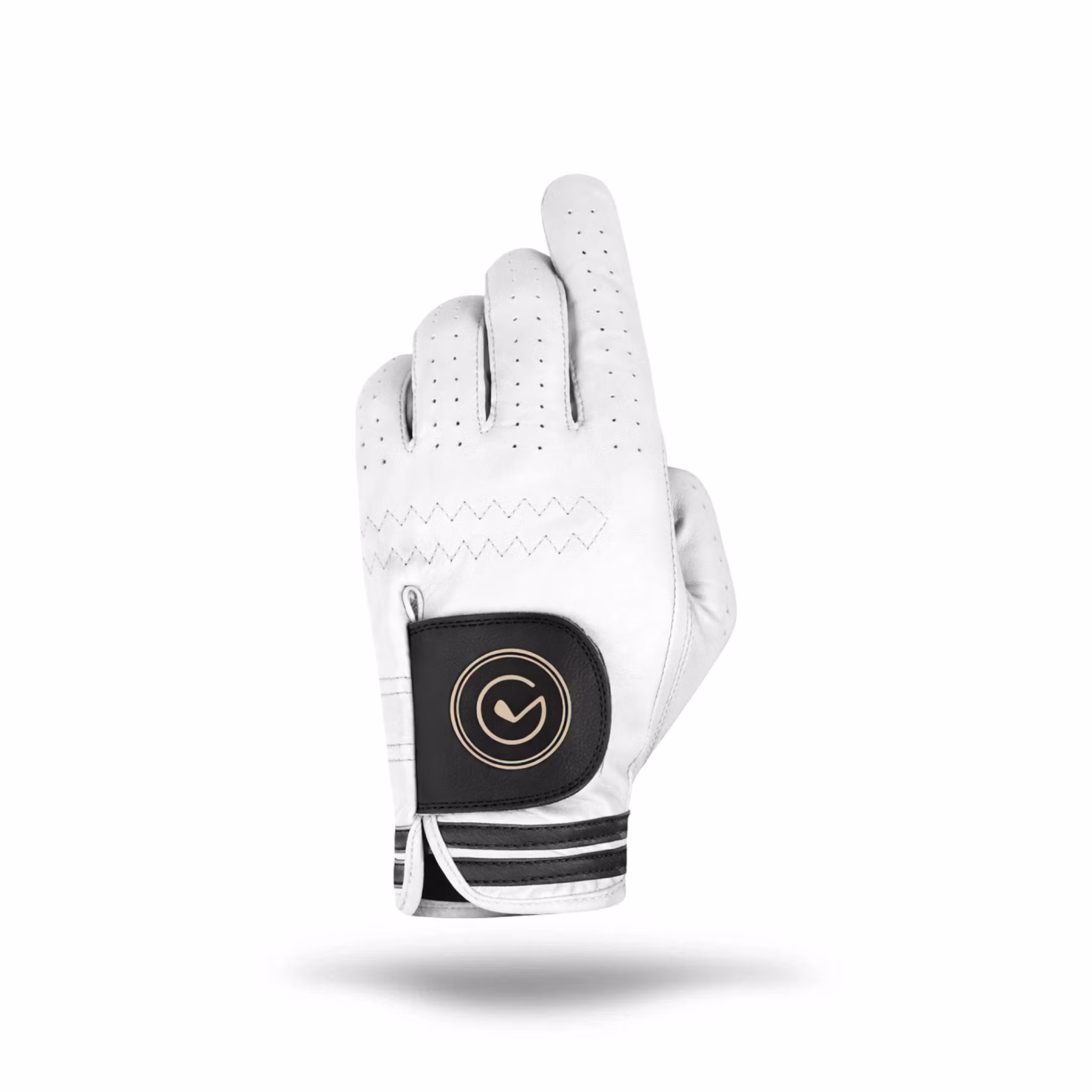 Golfhandske för dam i äkta cabretta-läder. Stone kombinerar stilren vit design med stone klassiska golfdetljer med komfort och säkert grepp på banan.